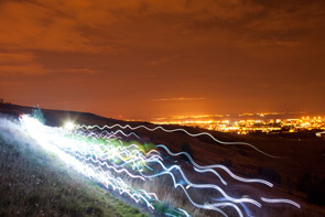 Drei Nächte, sechs Orte, 120 Läufer: Von Donnerstag bis Samstag, 3. bis 5. Oktober, haben die Ruhr Tourismus GmbH und der Regionalverband Ruhr die schottische Kunstorganisation NVA mit ihrem Kunst- und Sportprojekt Speed of Light ins Ruhrgebiet eingeladen. Ausgestattet mit LED-Lichtanzügen durchqueren 120 Läufer den Emscher Landschaftspark und zeichnen mit ihren Bewegungen faszinierende Lichtbilder. Für das Projekt werden bis Mittwoch, 4. September, trainierte Läufer aus dem Ruhrgebiet.
