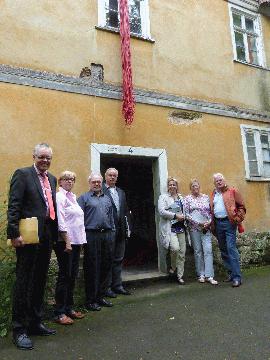 Die Ausstellung „Es ist einmal“ ist noch bis zum 8. September 2013 zu sehen. Die Ausstellung ist donnerstags und freitags von 15.00 Uhr bis 18.00 Uhr geöffnet sowie samstags und sonntags von 11.00 Uhr bis 18.00 Uhr. Pressekontakt: Pressestelle LANDKREIS KASSEL, Harald Kühlborn Zu dieser Meldung können wir Ihnen folgendes Medium anbieten: Es ist einmal Auf dem Foto sieht man von links nach rechts Ingo Buchholz, Hildegard Schwarz, Vladimir Olenburg, Reinhard Petersen (von der Unteren Denkmalschutzbehörde des Landkreises Kassel), Vizelandrätin Susanne Selbert, Monika Euler (Mit-Besitzerin) und Landrat a.D. Dr. Udo Schlitzberger vor dem Offizantenhaus und dem Kunstwerk „Rapunzel“ von K.F. Günther.
