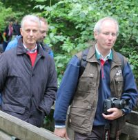 Rainer Bonhof (links) und Michael Puschmann testen den Premium-Wanderweg 3 "Zwei Seen-Runde" zwischen Hariksee und Borner See. Foto: Axel Küppers / Abdruck honorarfrei