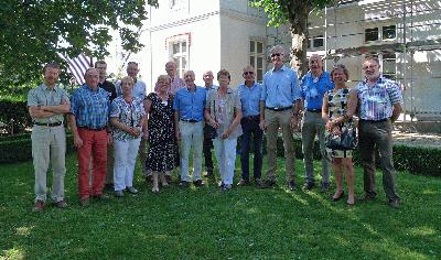 Die offizielle Delegation aus der belgischen Partnerstadt Bocholt besichtigt das Gut Heidefeld im Bocholter Ortsteil Spork mit Hausherrn Rudolf Ostermann (Mitte), Foto: Petra Taubach, Stadt Bocholt