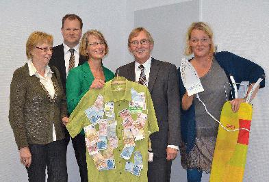 Spende der Aktion "Ironmen" übergeben Die Aktion "Ironmen" der städtischen Gleichstellungsstelle war ein voller Erfolg, auch wenn die Wäscheberge, die zugunsten des Iserlohner Frauenhauses von mutigen Männern zu bügeln waren, doch recht übersichtlich geblieben sind. Dennoch, insgesamt 1.500 Euro konnten im Rahmen eines Pressetermines am vergangenen Freitag, 20. September, an Anna Müller, Leiterin des Frauenhauses, und Marlene Blasius vom Awo-Unterbezirk Hagen-Märkischer Kreis übergeben werden. Bürgermeister Dr. Peter Paul Ahrens und Gleichstellungsbeauftragte Judith Heilmaier bedankten sich deshalb nicht nur bei den "Ironmen", sondern insbesondere auch bei den Sponsoren der Aktion Märkische Bank eG, Sparkasse Iserlohn, Stadtwerke Iserlohn GmbH, Firma Medice, Privatbrauerei Iserlohn, "Waschbar - Echt Sauber", Hausfrauenbund Iserlohn, Kulturbüro und “Continue“. |