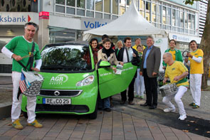 „Toll, was den Besuchern hier rund um das Thema Klimaschutz geboten wird“, fand Gerd Meier, der mit seiner Enkelin den Klimatag besuchte. Am bunten Aktionszelt für Kinder bastelten, spielten und experimentierten die Jüngsten. Besucherin Ilka Koelsch war in anderer Mission unterwegs. Sie nutzte die Gelegenheit, am Stand des ADFC ihr nagelneues Fahrrad kodieren zu lassen. Dadurch kann ihr das Rad im Falle eines Diebstahls zugeordnet werden. „Wir sind extra nach Herten geradelt und bummeln nun noch eine Runde an den Ständen vorbei.“ Denn hier gab es viel zu entdecken. So wie den knallgrünen Smart der Abfallgesellschaft AGR. Das Besondere: Das Auto fährt mit Strom aus Abfall und schont so die Umwelt. Mit dem Renault Twizy der Hertener Stadtwerke war ein weiterer Elektroflitzer vor Ort.