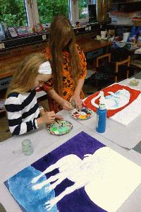 Die Kunstwissenschaftlerin Gabriele Schenk leitet die kreativen Aktionen an. Jeder kann nach seinen eigenen Fähigkeiten sich entwickeln und bekommt Unterstützung.