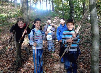 Die Wortschatzerweiterung der Kinder war enorm, denn jeden Tag wurden unbekannte Pflanzen bestimmt (z.B. Johanniskraut, Rainfarn, Goldrute, Binsen, Pfeifengras) und Begriffe wie z.B. Rindenprofil erklärt. Die Kommunikationsfreude der Kinder wurde durch das gemeinsame Entdecken des Waldes, durch die Camplieder, durch Großgruppen-Spiele, das Bauen von Hütten, Waldjojos, Stockzwerge, Waldbilder uvm. herausgefordert. Artikel, Präpositionen, Umlaute, Einzahl und Mehrzahl wurden auf ungezwungene Weise, ganz ohne Arbeitsblätter, gelernt und durch das emotionale Erleben verankert.