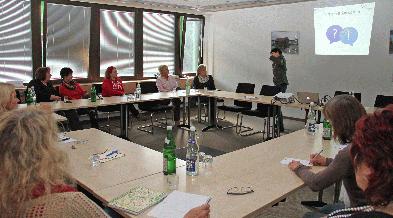 Den Teilnehmerinnen gab Gabriele Bötticher anhand von ihren praktischen Erfahrungen mit Demenzerkrankten und ihrer einfühlsamen Art einen guten Einblick in das Thema. Sie erklärte verschiedene Verhaltensweise von dementen Menschen und bot gleichzeitig Tipps, wie man mit solchen eher ungewöhnlichen Handlungen umgehen kann.