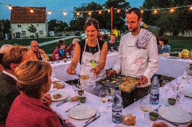 Laura Popplow verband in ihrem Projekt „FUNGUTOPIA STATION Gravenhorst“ die ehemalige Funktion eines Klosters als Lebensmittelproduzent mit der nachklösterlichen Nutzung des Gewölbes in den 70er Jahren als Champignonzucht. Mit Pilzfreunden aus der Region diskutierte und probierte die Künstlerin in Workshops effiziente Zuchtverfahren, regte zum Anlegen von kleinen privaten Pilzzuchtstätten zu Hause an und lud mit ihrem Künstlerkollegen David von Westphalen zu einer großartigen Kochkunstaktion ein.