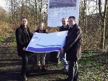 Regionale-Projekt LenneSchiene: Beginn der Bauarbeiten für Lennepromenade - Radweg Lenneroute im Bereich Pater und Nonne Nachdem im Rahmen des Brückenfestes 2013 bereits der erste Spatenstich für den Bau der Lennepromenade in Iserlohn-Letmathe erfolgt ist, wurden anschließend vor allem vorbereitende Arbeiten im Bereich des Stützbauwerks am Lennedamm durchgeführt. Die waren öffentlich kaum wahrnehmbar. Das wird sich ab kommenden Montag, 20. Januar, ändern: Die Stadt Iserlohn beginnt mit dem Bau des geplanten Geh- und Radweges auf der südlichen Seite der Straße An Pater und Nonne. Im Rahmen des Projekts LenneSchiene wird die Straße so umgestaltet, dass der dort verlaufende Radweg Lenneroute sich anschließend straßenbegleitend mit einem Sicherheitsstreifen zwischen Fahrbahn und neuem Geh- und Radweg an den Bereich der künftigen Lennepromenade anschließt. |