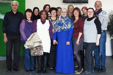 Integrationsrat besucht „Integrative Nähwerkstatt“ der VHS Georgette Nsimere Mimpiya, Ercan Atay und VuraI Icoglu vom Integrationsrat machten sich am 25. Februar selbst ein Bild von dem Kurs „Integrative Nähwerkstatt“ in der Volkshochschule Iserlohn. Der Integrationsrat übernimmt sowohl die Honorar- als auch die Materialkosten für dieses Angebot. Zehn Frauen treffen sich jeden Dienstag am Vormittag, um gemeinsam zu nähen und im Gespräch andere Kulturen kennen zu lernen. Die Frauen kommen aus Russland, Marokko, Deutschland, Kasachstan, Irak, Polen, Irland und Kirgisistan. Viele Sprachen sind zu hören, dennoch verstehen sich alle Frauen, es herrscht ein fröhliches Arbeitsklima. Integrationsprobleme? Keine, die verschiedenen Kulturen werden als Bereicherung empfunden, wie Kursleiterin Lydia Remisch betont. Dies ist offensichtlich nicht nur im Sport erfolgreich, sondern auch bei einem solch kleinen Projekt. Ganz im Sinne des Integrationsrates besteht auf Seiten der jetzigen und früheren Teilnehmerinnen der Wunsch, sich nach Kursende weiter zu treffen. Wo und in welcher Form wird noch diskutiert. |