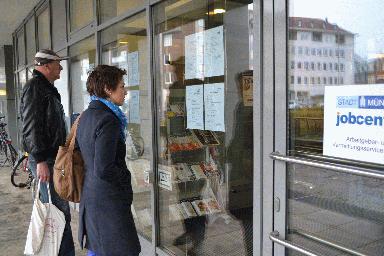 Auch im Schaufenster des Stadthauses 2 am Ludgeriplatz informiert das Jobcenter seit neuestem über freie Stellen. - Foto: Stadt Münster. Veröffentlichung mit dieser Pressemitteilung honorarfrei.