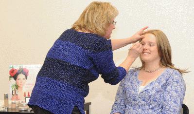 Um das zu unterstreichen gab es beim Informationsabend in Kooperation von Klinikum Westfalen und VHS auch gleich eine praktische Vorführung. Dagmar Schlechter, Krankenschwester und Kosmetikerin in Personalunion führte vor, wie man dünner werdende Augenbrauen und Wimpern optisch verstärken kann.