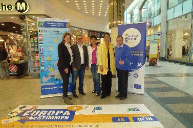 Mehr als 500 Passanten interessierten sich für die Bodenzeitung "Europa mitbeSTIMMEN", die die Europa-Union Bocholt mit Unterstützung des Europe-direct Informationszentrums Bocholt am 10. April 2014 in den Shopping-Arkaden auslegte. Die Zeitung lud die Besucherinnen und Besucher ein, ihre Meinung zu Europa und europäischen Themen zu äußern.