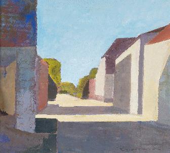 Johann Rosenboom, Dorfstraße (Krummhörn), Tempera auf Papier, 2012. © Kunsthaus Leer, J. Bambrowicz