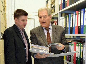 Dr. Wilhelm Bleicher übergibt heimatkundliche Materialsammlung an das Stadtarchiv Iserlohn Mehrere Regalmeter füllen die Ordner und Kartons, die in den vergangenen Wochen von Dr. Wilhelm Bleicher an das Stadtarchiv Iserlohn abgegeben wurden. Der seit Jahrzehnten aktive Heimatforscher hat seine Materialsammlungen zu abgeschlossenen Projekten über den Raum Iserlohn dem Stadtarchiv zur dauerhaften Aufbewahrung überlassen. Die dicken Ordner sind gefüllt mit Presseartikeln, Kopien, Akten- und Urkundenauszügen sowie Notizen und Schriftwechseln. Die Sammlung umfasst Material, das die Grundlage für zahlreiche Aufsätze, Bücher oder Vorträge von Dr. Bleicher war. Stadtarchivar Rico Quaschny freut sich über den Neuzugang: „Das Stadtarchiv bemüht sich seit den 1970er Jahren verstärkt um Zugänge von privaten Sammlungen, da nur durch solche Ergänzungen zu den Verwaltungsbeständen ein umfassendes Geschichtsbild entstehen kann.“ Die Sammlung von Dr. Bleicher enthält vor allem Unterlagen zu den Stadtteilen im Iserlohner Norden, zur Industriegeschichte im Lägertal sowie zum Märkischen Gymnasium und zum Hemberg-Museum. Sie stellt für das Stadtarchiv eine besondere Bereicherung zu diesen Themen dar und dokumentiert zugleich die jahrzehntelange Forschungsarbeit von Dr. Bleicher. Bereits in den vergangenen Jahren hatte Dr. Bleicher kleinere Materialsammlungen dem Stadtarchiv überlassen. Nun folgten noch einmal mehrere Meter zur Komplettierung des Bestandes. Dr. Bleicher kündigte an, demnächst auch seine Forschungsunterlagen zum Kulturgut niederdeutsche Sprache sowie zu Märchen und Sagen dem Stadtarchiv zu übergeben. Auch diesen Bereichen widmete er sich in verschiedenen Veröffentlichungen und Vorträgen. Eine Nutzung der übergebenen Unterlagen durch Dritte ist nur mit Einwilligung von Dr. Bleicher möglich. |