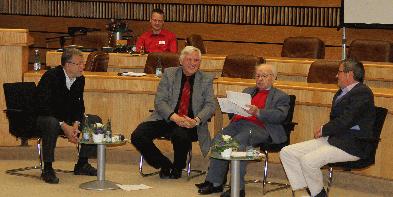 | (v.l.) Günter Lamprecht, Moderator Hans-Peter Boer, Rolf Abrahamsohn und Peter Hartl |