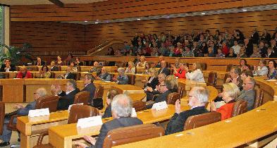 Nach der Pause wurde es besonders bewegend: Die beiden Zeitzeugen und Peter Hartl vom ZDF ließen ihrer Zuhörer die Reichskristallnacht auf ganz eigene Weise erleben. Vor allem Rolf Abrahamsohn fesselte den ganzen Saal mit seinen lebendigen Erzählungen.