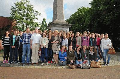 Sie wurden begleitet von den Schülern des Niederländisch-Kurses der 9. Klasse der Werner-von-Siemens-Realschule und der Lehrerin Claudia Hembrock. Im Rathaus wurde die Gruppe von der zweiten stellvertretenden Bürgermeisterin Hanni Kammler empfangen.