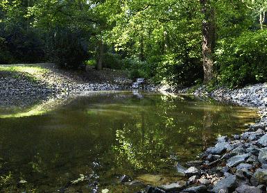 Sanierung des unteren Rupenteiches ist abgeschlossen Die Stadt Iserlohn hat im März damit begonnen, den unteren Rupenteich einschließlich des dazugehörigen Stützbauwerkes zu sanieren. Die Arbeiten konnten nun abgeschlossen werden. In einem Pressegespräch erläuterten jetzt Vertreter der Stadt Iserlohn und des beteiligten Planungsbüros die einzelnen Sanierungsschritte. Die Stadtparkanlage „Rupenteich“ besteht aus dem unteren und dem oberen Rupenteich. Der untere Rupenteich weist eine Wasserfläche von ca. 500 m2 auf. Das zugehörige Stützbauwerk aus Naturstein mit Überlauf und „Auffangtasse“ hat kulturhistorische Bedeutung für Iserlohn. Das Bauwerk stellt einen Bezug zu Professor Danz und dem Gartenarchitekten Schödder her und ist Teil der Sichtachse Danzturm-Rupenteich-Maismecke. Aus kulturhistorischer Sicht sollte daher bei der Sanierung des unteren Rupenteiches das historische Aussehen der Stützmauer wieder hergestellt werden. Die Stützmauer wies altersbedingt deutliche Rissbildungen auf und war an vielen Stellen undicht. Darüber hinaus war die Abdichtung des Teiches beschädigt, wodurch das Wasser versickerte, statt wie vorgesehen über den Überlauf in die „Auffangtasse“ zu fließen und von dort aus abgeführt zu werden. Zudem waren das Wurzelwerk und der Stamm einer zirka dreißig Meter hohen Eiche in die Stützmauer eingewachsen. Folgende Arbeiten wurden bei der Sanierung durchgeführt: Abdichtung der Teichanlage mit Ton Ton ist ein natürlicher Baustoff. Somit bildet die Abdichtung aus Ton keinen Fremdkörper in der natürlichen Umgebung des Teiches und eignet sich gut zur naturnahen Sanierung der Teichanlage. Zudem quillt Ton in Kontakt mit Wasser auf. Deshalb kann die Tonabdichtung kleinere Beschädigungen (z.B. Durchwurzelung) selbstständig ausgleichen. Umgesetzt wurde folgender Aufbau: Stabilisierung des Teichbodens mit einem Mineralgemisch, 20 cm Tonabdichtung, 30 cm Schutzschicht und 15 cm Grobschlag (Steinbrocken) als Erosionsschutz. Sanierung des Stützbauwerks Die Sanierung der Stützmauer erfolgte parallel zur Erneuerung der Teichabdichtung. Die Mauer wurde gereinigt, der Einwuchs der Eiche in das Mauerwerk beseitigt, die Blocksteinvorlage, die zunächst für die Standsicherheit der beschädigten Stützmauer errichtet werden musste, zurück gebaut sowie beschädigtes Natursteinmauerwerk erneuert und neu verfugt. Mit der Durchführung der Arbeiten war die Firma Krutmann aus Menden betraut. Um die Eiche zu erhalten, wurde ein Baumchirurg hinzugezogen. Kosten Die Kosten für die Sanierung des unteren Rupenteiches liegen bei rund 100 000 Euro. Ausblick Nachdem die Sanierungsarbeiten am unteren Rupenteich abgeschlossen sind, werden entsprechende Arbeiten auch am oberen Rupenteich, der ungefähr vier Mal so groß ist wie der untere, durchgeführt. Damit soll Ende 2014 / Anfang 2015 begonnen werden.