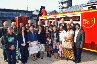Kreis Unna. (PK) Internationaler Besuch im Feuerwehrservicezentrum: Dezernent Dirk Wigant und Kreisbrandmeister Ulrich Peukmann begrüßten 13 DiakonieManagement-Studenten aus Afrika und Asien in Unna und informierten sie über den Bevölkerungsschutz.