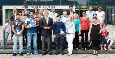 Landrat Makiolla mit den deutschen Neubürgern. Foto: Kreis Unna