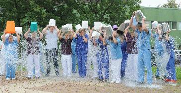 Die Eiswasser-Kampagne, im Original ALS-Icebucketchallenge, rollt auch durch Kamen. Inzwischen hat die Initiative zur Unterstützung von Menschen mit ALS, einer Erkrankung des motorischen Nervensystems, nach Prominenten in und außerhalb Deutschlands Betriebe in der Stadt erfasst. Die Belegschaft der Kamener Zahnklinik "All Dente" duschte öffentlich eiskalt und nominierte dann die Mitarbeiter des Hellmig-Krankenhauses. Ein Teil der Mitarbeiter des Krankenhauses quer durch alle Abteilungen unterzog sich am Dienstag zum Dienstwechsel der obligatorischen Eiswasserdusche. Ihnen war die Umsetzung der Nominierung auch deshalb ein besonders Anliegen, weil ein Mitarbeiter des Krankenhauses vor Jahren selbst an der Krankheit starb. Neben der Abkühlung gehört zu der Kampagne jeweils auch das Einsammeln von Spenden. Die Belegschaft des Hellmig-Krankenhauses nominierte nach dem Einsatz gleich drei weitere Kamener Adressaten: die Belegschaften von Haus Volkermann und Reha Kamen sowie die Mitarbeiter des Rathauses. Nun sind diese aufgefordert, zu reagieren.