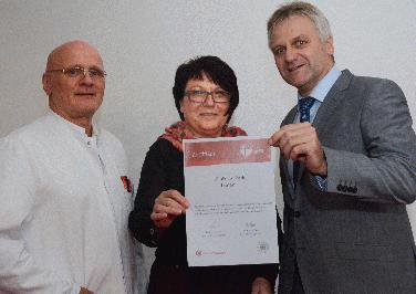 Bildinfo: Das Behandlungsinformationssystem eBI wurde im Klinikum Westfalen zunächst in Lünen eingeführt. Das Bild zeigt Chefarzt Dr. Norbert Kunath, Projektleiterin Conny Müller-Wenzel und den Krankenhausleiter der Klinik am Park Lünen, Christian Scholz.