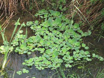 Es handelt sich um Wassersalat, Dickstielige Wasserhyazinthe und Gemeiner Schwimmfarn. Alle drei Arten sind beliebte Aquarienpflanzen, die im Handel erhältlich sind und aus Südamerika, Amazonas-Raum, und aus Ostasien stammen.