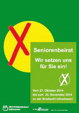 Seniorenbeiratswahl: Versand der Briefwahlunterlagen ab Montag – Infostand mit Kandidaten in der Fußgängerzone Vom 27. Oktober bis 23. November wird in Iserlohn ein neuer Seniorenbeirat gewählt. Wählen können alle Iserlohner Bürger und Bürgerinnen, die am 25. Mai 2014 (Tag der Kommunalwahl) ihr 60. Lebensjahr vollendet hatten und seit mindestens drei Monaten in Iserlohn wohnhaft waren. Der neue Seniorenbeirat wird aus neun direkt gewählten Mitgliedern und sieben von den Ratsfraktionen entsandten Vertretern bestehen. Seniorenbeiräte können in Nordrhein-Westfalen von den Kommunen freiwillig eingerichet werden und längst nicht alle Städte und Gemeinden haben von dieser Möglichkeit Gebrauch gemacht. Und auch, dass die Bürger und Bürgerinnen dort, wo es einen Seniorenbeirat gibt, diesen direkt wählen können, ist nicht selbstverständlich. In Iserlohn findet diese Urwahl ausschließlich als Briefwahl statt. In der kommenden Woche, von Montag, 20., bis Freitag, 24. Oktober, werden die Briefwahlunterlagen per Post an die rund 25.500 wahlberechtigten Iserlohner Seniorinnen und Senioren verschickt. Bis einschließlich 23. November haben sie dann die Möglichkeit, von ihrem Wahlrecht Gebrauch zu machen. Alle Interessierten sind herzlich eingeladen, sich am Infostand des Seniorenbeirates am Samstag, 25. Oktober, von 10 bis 14 Uhr in der Iserlohner City (Wermingser Straße, Ecke Am Dicken Turm / Ostengraben) über die Arbeit des Beirates zu informieren und Kandidaten der Seniorenbeiratswahl kennen zu lernen und mit ihnen ins Gespräch zu kommen. |