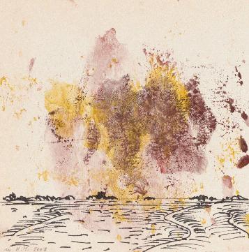 Am Watt 7, 2008, Wasserfarbe und Tintenstift auf Papier, 10 x 10 cm