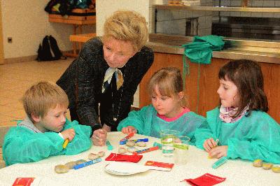 Nach dem Besuch in der Notaufnahme ging es ans Malen. Die kleinen Besucher zeichneten lächelnde Gesichter auf Steine, die später an Patienten verteilt werden als kleine Aufmunterung. "Diese Schmunzelstein-Aktion ist toll angelaufen", erzählt Ingeborg Bülow für das Klinikum Westfalen. Beide Seiten, Kinder und Patienten hätten viel Spaß an den Schmunzelsteinen.