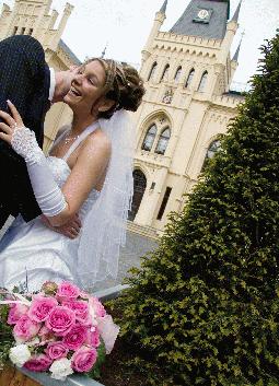 Brautpaar vor dem Schloss