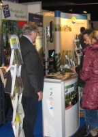 Interessierte Besucher am Stand des Naturparks Schwalm-Nette auf der Messe für Freizeit und Tourismus in Kalkar.