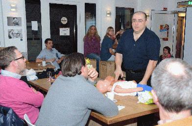 Was tun wenn sich das eigene Kind schwer verbrennt, einen gefährlichen Gegenstand verschluckt oder auf andere Weise zu Schaden kommt? Dr. Dieter Metzner, ärztlicher Leiter des Hellmig-Krankenhauses und Dr. Christos Erifopoulos, dort als Notarzt und Oberarzt tätig, erläuterten beim Informationsabend in den Räumen der Familienbande, wie erste Hilfe geleistet werden kann bei Notfällen mit Kleinkindern oder Säuglingen.
