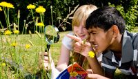 Die Natur unter die Lupe nehmen können Heranwachsende nicht nur im Klassenzimmer, sondern auch auf einer Wiese. Der Fortbildungstag am 29. April im Kreishaus-Forum beschäftigt sich mit außerschulischen Lernorten. Foto: Stefan Arendt / LVR-ZMB - Abdruck honorarfrei