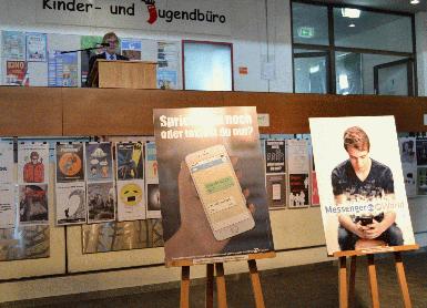 Plakatkampagne "Sprichst du noch oder textest du nur?“ - Ausstellung im Iserlohner Rathausfoyer bis 16. Juni "Sprichst du noch oder textest du nur?“ heißt die Plakat-Ausstellung, die Bürgermeister Dr. Peter Paul Ahrens am Mittwoch, 3. Juni, im Foyer des Rathauses am Schillerplatz eröffnet hat. Gezeigt werden Arbeiten von Schülern und Schülerinnen des Berufskollegs des Märkischen Kreises in Iserlohn und von Schulen der Iserlohner Partnerstadt Nyíregyháza (Ungarn). Im Rahmen einer gemeinsamen Aktion von Jugend- und Ordnungsamt sowie des Bereiches Medien- und Öffentlichkeitsarbeit der Stadt Iserlohn waren die Schülerinnen und Schüler aufgerufen, für eine Kampagne Plakate zum Thema "Sprichst du noch oder textest du nur?“ zu entwickeln. Ziel der Kampagne ist es, zu einem bewussteren und verantwortungsvolleren Umgang mit Handys und Smartphones vor allem im Beisein von anderen zu sensibilisieren. Aus den Entwürfen wurde in jedem Land ein Siegerplakat ausgewählt. Die Siegerplakate werden neben allen anderen Entwürfen in der Ausstellung im Foyer des Rathauses gezeigt. Zu sehen sind rund neunzig Plakate. Im Rahmen der Ausstellungseröffnung wurden Jasmin Buschkämper und Alexander Nemzew von Bürgermeister Dr. Ahrens für ihr Siegerplakat ausgezeichnet. Das ungarische Siegerplakat wurde entworfen von László Szremanyák. Die Ausstellung wird bis einschließlich 16. Juni im Rathausfoyer präsentiert. Das deutsche Siegerplakat wird künftig regelmäßig auf Plakatreitern im Iserlohner Stadtbild zu sehen sein.