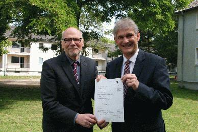 Bei einem Besuch im Kreis überreichte Bernd Müller als zuständiger Abteilungsleiter bei der Bezirksregierung Arnsberg einen Bewilligungsbescheid über exakt 100.555 Euro. Der Kreis legt weitere 40.000 Euro drauf.