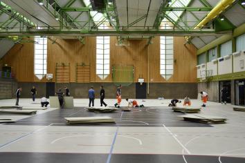 123 Flüchtlinge aus Syrien in der Almelo-Sporthalle untergebracht – Bürgermeister dankt allen Unterstützern „Ich bin sehr erleichtert. 123 Flüchtlinge, darunter 28 Kinder, aus dem Kriegsgebiet Syrien sind gestern zu uns gekommen. Sie haben die erste Nacht gut verbracht. Vor allem aber bin ich auch dankbar für die große Unterstützung die wir gestern erfahren durften bei der Mammutaufgabe, die Almelo-Sporthalle als Notunterkunft herzurichten und die Menschen am Abend in Empfang zu nehmen und zu betreuen“, zeigte sich Bürgermeister Dr. Peter Paul Ahrens tief beeindruckt bei einer Pressekonferenz am heutigen Samstag. Als am Donnerstag der Regierungspräsident im Wege eines Amtshilfeersuchens darum bat, kurzfristig Flüchtlinge in Iserlohn aufzunehmen, unterbrach Ahrens seinen Urlaub und kehrte nach Iserlohn zurück. Bei seinem Eintreffen im Rathaus hatte der Krisenstab unter der Leitung der Ersten Beigeordneten Katrin Brenner bereits alle Maßnahmen für die Unterbringung der Flüchtlinge organisiert und vorbereitet, von der Beschaffung der notwendigen Betten, Bettzeug, Grundausstattung mit Hygieneartikeln über die Nahrungs- und ärztliche Versorgung bis hin zu Sicherheitsdienst und Dolmetscher. Zur Unterrichtung der Nachbarschaft wurde ein Informationsbrief vorbereitet, der gestern Morgen verteilt wurde. Bei der Standortwahl für die Unterkunft galt es sehr sorgfältig zu überlegen und zu prüfen, wo so kurzfristig um die 150 Menschen untergebracht werden können. Dabei waren nicht nur die erforderlichen Räumlichkeiten zu bedenken, sondern auch die notwendige Infrastruktur wie sanitäre Einrichtungen und Essensversorgung sowie Rathaus- und Krankenhausnähe. Letztlich fiel die Entscheidung auf den Standort Almelo-Sporthalle. Die wurde seit gestern Morgen unter der Regie von Ordnungsamtsleiterin Angela Schunke und mit Unterstützung zahlreicher städtischer Stellen, SIH, KIM, Feuerwehr sowie der freiwilligen Feuerwehr in einem echten Kraftakt als Notunterkunft hergerichtet. Besonders erfreulich dabei war, dass auch rund dreißig Asylbewerber aus bereits bestehenden Asylunterkünften spontan ihre Hilfe anboten und kräftig mit anpackten. Nachdem die Stadt zunächst keinerlei Informationen darüber hatte, wie viele Frauen, Männer und Kinder unter den Flüchtlingen sein werden und aus welchen Ländern sie kommen, kam am Nachmittag die Mitteilung, dass es sich ausschließlich um syrische Flüchtlinge handeln werde, die gegen 19 Uhr eintreffen würden. Im Laufe des Tages kamen immer mehr Menschen zur Almelo-Halle, die bei der Ankunft der Flüchtlinge die Stadt bei der Betreuung unterstützen wollten. Darunter waren rund zwanzig Freiwillige aus der Stadtverwaltung, Vertreter der Parteien, des Flüchtlingsnetzwerkes, der Diakonie, aus Kirchengemeinden, muslimischen Glaubensgemeinschaften und anderen Organisationen, aber auch ganz spontan Menschen aus der Umgebung, die ihre neuen Nachbarn begrüßen und einfach mithelfen wollten. Und das war auch gut so, denn als die Flüchtlinge eintrafen, wurde jede Hand gebraucht. Zunächst wurden die Personalien aufgenommen. Anschließend bekamen die Flüchtlinge, die in Kleingruppen von jeweils zwei bis drei Helfern betreut wurden, ein Taschengeld. Dann brachten die Betreuer die Menschen zur ärztlichen Untersuchung. Danach gab es die Erstausstattung und schließlich wurde ihnen ihr Schlafplatz gezeigt, bevor es das Abendessen gab. Letztlich hat Angela Schunke mit ihren Mitarbeitern die Unterkunft gegen 23.30 Uhr verlassen. „Mit vereinten Kräften hat alles hervorragend geklappt“ freut sich Bürgermeister Dr. Peter Paul Ahrens, der gestern während der Herrichtung der Halle mehrfach vor Ort war und natürlich am Abend die Flüchtlinge begrüßte. Seit heute Morgen 8 Uhr sind die städtischen Mitarbeiter wieder vor Ort und auch etliche Ehrenamtliche sind bereits eingetroffen. Zunächst müssen die Neuankömmlinge zum Röntgen gebracht werden. Das ist eine Standard-Untersuchung, die bei der Erstaufnahme üblich ist. Anschließend steht Einkleiden auf dem Programm. Viele der Menschen haben nur das, was sie auf dem Leib tragen. Hier öffnet das Sozialzentrum Lichtblick heute seine Kleiderkammer. Für die Kinder hat die Stadt heute einen Clown zur Unterhaltung organisiert. Wer die Flüchtlinge mit Sachspenden wie Kleidung oder Spielzeug unterstützen möchte, kann sich an das Sozialzentrum Lichtblick am Bilstein oder das DRK am Karnacksweg wenden. Wer sich bei der Betreuung engagieren möchte, kann sich an die Flüchtlingsberatung der Diakonie Mark-Ruhr wenden. Die Stadt Iserlohn hat seit Donnerstag unter der Rufnummer 02371 / 217‑1234 ein Bürgertelefon eingerichtet, das an diesem Wochenende für Informationen und Fragen wie folgt besetzt ist: Samstag, 25. Juli 2015: 12 bis 16 Uhr Sonntag, 26. Juli 2015: 12 bis 16 Uhr Für Donnerstag, 30. Juli, plant die Stadt Iserlohn eine Informationsveranstaltung vor allem für die Nachbarschaft rund um die Almelo-Halle. Zeit und Ort werden kurzfristig bekannt gegeben. Soeben ist ganz aktuell die Mitteilung gekommen, dass voraussichtlich am Sonntag weitere 27 Flüchtlinge nach Iserlohn kommen werden, womit dann das angekündigte Kontingent von 150 Flüchtlingen erfüllt wäre. |
