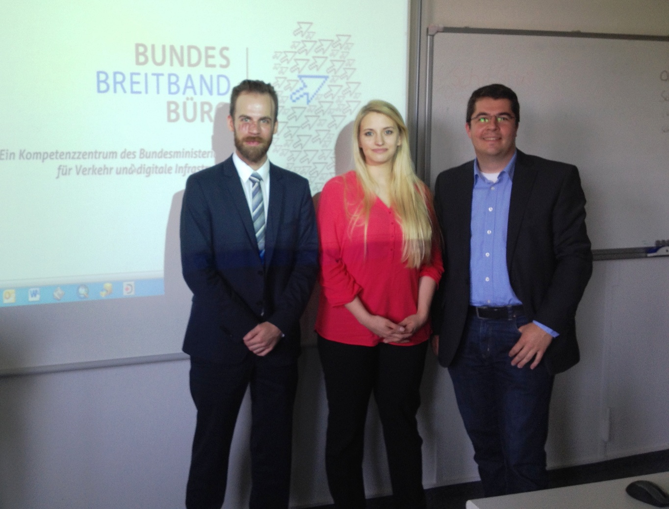 Beim ersten Seminar in NRW (v.l.n.r.): Marc Kastner, Breitbandbüro des Bundes, Claudia Motzek, BreitbandConsulting.NRW, und Stefan Glusa, TKG-SWF. / Foto: TKG-SWF