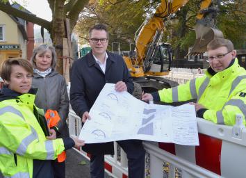 Aktueller Stand bei den Kanal- und Straßenbauarbeiten auf der Baustelle im Bereich Altstadt / An der Schlacht / Obere Mühle Bei einem Pressetermin (13. Oktober 2015) auf der Altstadtbaustelle erläuterten der städtische Bauressortleiter Mike Janke, Stadtplanerin Gabriele Bilke, Projektleiterin Nicole Neuhoff und Bauleiter Stefan Dörpinghaus den aktuellen Stand der Kanal- und Straßenbauarbeiten. Diese sind inzwischen vorangeschritten. Kanalbau findet zurzeit in der Straße „Obere Mühle“ statt. Im Straßenbau wird zurzeit der südöstliche Teil der Straße „An der Schlacht“ erstellt. Im Bereich der Straße „Obere Mühle“ werden zwei neue Kanäle parallel verlegt. Einer dient der örtlichen Entwässerung. Durch den anderen wird später Wasser aus dem in der Mitte der Fahrbahn liegenden verrohrten Baarbach auf den Fritz-Kühn-Platz geleitet, wo im Rahmen der geplanten Umgestaltung ein Wasserlauf entstehen soll. Erschwert werden die Kanalarbeiten in der Straße „Obere Mühle“ durch eine Vielzahl von Versorgungsleitungen sowie durch das in der Mitte der Straße liegende Baarbachgewölbe. Das Baarbachgewölbe muss für die Kanalarbeiten durch ein Streifenfundament von hundert Metern Länge, von 1,30 Metern Höhe und 1,15 Metern Breite seitlich gestützt werden. Darüber hinaus muss das Baarbachgewölbe einmal mit einem neuen Kanal unterquert werden. Zu Problemen führte eine Ende letzter Woche aufgefundene Leitungstrasse der Telekom in der Straße „Obere Mühle“. Der Verlauf der Trasse wich von den zuvor von der Telekom eingeholten Leitungsplänen ab. Eine Verlegung der Leitungstrasse hätte zu erheblichen Kosten geführt und eine Vollsperrung der Straße „Obere Mühle“ erfordert. Darüber hinaus wären die Bauarbeiten am Kanal und an der Straße zunächst für mindestens sechs Wochen zum Erliegen gekommen. Um eine Verlegung der Leitungstrasse der Telekom zu umgehen, wurde der beabsichtigte Verlauf des Entwässerungskanals einschließlich der erforderlichen Baarbachunterquerung geändert. Dies führte dazu, dass auch bereits neu verlegte Kanalrohre noch einmal aufgenommen werden mussten. Der Schritt war erforderlich, um den Baufortschritt sicherstellen zu können. Verkehrssituation Nach wie vor werden jedoch die aufgestellten Absperrungen und Beschilderungen für Fußgänger zur Umgehung des Baufeldes missachtet. Sogar mutwilliges Öffnen der Absperrung wurde mehrfach beobachtet. Die Stadt Iserlohn weist deshalb zum wiederholten Male darauf hin, dass das Queren des Baustellenbereiches gefährlich ist und appelliert erneut an alle Fußgänger, sich an die geänderte Gehwegsführung zu halten und die gesperrten Baubereiche zu umgehen. Ansprechpartnerin für die Baumaßnahme im Rathaus ist Projektleiterin Nicole Neuhoff bei der Abteilung Stadtentwässerung, Telefon 02371 / 217-2752, E-Mail: nicole.neuhoff@iserlohn.de |