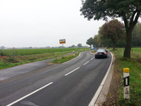 Die Kreisstraße 20 in Brüggen-Genrohe. Zwischen dem Ortsausgang und der Ortschaft Lüttelbracht saniert der Kreis Viersen den Radweg auf 700 Metern.