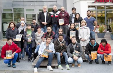 Zu dieser Meldung können wir Ihnen folgendes Medium anbieten: Teilnehmer des Deutschkurses für Flüchtlinge
