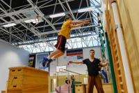 Zwei Jugendliche trainieren gemeinsam in einer Sporthalle. Die Trendsportart "Le Parcours" ist Thema eines Workshops des Kreisportbunds Viersen am 15. November in St. Tönis.
