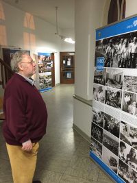 Kreisarchivar Dr. Gerhard Rehm an den Fototafeln zu "40 Jahre Kreis Viersen" in der Kempener Burg. Dort befindet sich auch das Archiv des Kreises. Foto: Axel Küppers / Abdruck honorarfrei