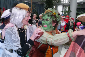Obwohl Volker Linder schon mit Sträflingshemd und Strohhut ausgestattet war, konnten es die Damen nicht lassen und dekorierten ihn zusätzlich mit großen Ohren und einer Blues-Brothers-Brille. Die Hände gefesselt, eine Kette am Fuß und mit gestutzter Krawatte wurde der entmachtete Stadtbaurat dann ins Glashaus gebracht. Dort erwarteten ihn bereits mit lautem „Helau“ viele feierwütige Jeckinnen und Sitzungspräsidentin Conny Meyer zur großen Weiberfastnachtsparty. Diese nannte Lindner die Bedingung für seine Freiheit: Nur gegen ein großes Fass Bier würde er von den Fesseln befreit. Andernfalls müsse er ins Exil: nach Herne-Crange oder Gelsenkirchen-Mitte.