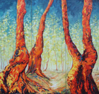 Das Bild "Wald" der Künstlerin Ellen von der Linden aus Willich-Anrath ist in der Kunstausstellung "Naturell-ART" im Naturparkzentrum Wildenrath zu sehen.