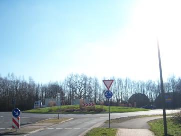 Bildzeile: Am Kreisel Rhynerner Straße/Rudolf-Diesel-Straße wird sich die Vorfahrt ändern: Noch haben Radfahrer Vorfahrt, da der Kreisverkehr außerorts liegt, muss die Regelung aber überarbeitet werden. Foto: M. Arnold – Kreis Unna
