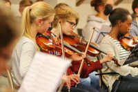Das Sinfonieorchester der Kreismusikschule Geldern - im Rahmen der 18. Kreis Klever KulTourTage präsentieren die Schülerinnen und Schüler der Steicher- und Blockflötenklassen im Naturparkzentrum Wachtendonk ihr Können.