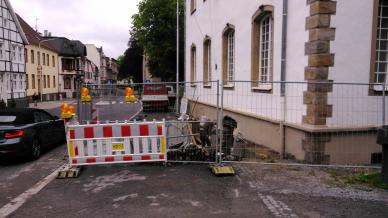 Gehwegsperrung an der Straße „Altstadt“ für Aufzugbau am Stadtmuseum In der vergangenen Woche haben am Gebäude des Stadtmuseums die Bauarbeiten für den geplanten Außenaufzug begonnen. Zunächst erfolgt die Ausschachtung und die Herstellung der sogenannten Aufzugsunterfahrt an der rechten Gebäudeseite. Dafür musste der Gehweg an der Straße „Altstadt“ im Bereich des Museumsgebäudes gesperrt werden. Fußgänger werden gebeten, auf den gegenüberliegenden Gehweg auszuweichen. Dieser ist über die Zebrastreifen am neuen Kreisverkehr oder in Höhe der Einmündung „Wiemer“ zu erreichen. Die Gehwegsperrung wird zunächst zirka vier Wochen andauern. Später, wenn der Aufzugsschacht als Stahlkonstruktion an das Gebäude angebaut wird, muss der Gehweg erneut gesperrt werden. Die Stadt Iserlohn wird rechtzeitig darüber informieren. |
