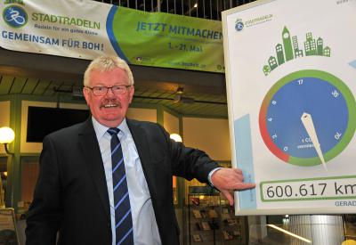Bürgermeister Peter Nebelo freut sich über das "überragende" Ergebnis beim STADTRADELN 2016 und dankt allen Bocholterinnen und Bocholtern, die kräftig in die Pedale getreten haben - Foto: Bruno Wansing, Stadt Bocholt