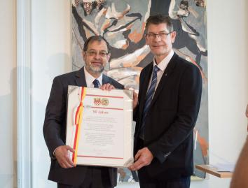 Städtepartnerschaftsjubiläum: 50 Jahre Auchel-Letmathe gefeiert Die Städtepartnerschaft zwischen Auchel in Frankreich und Iserlohn besteht seit fünfzig Jahren! Aus diesem Anlass hatte die Stadt Iserlohn am Samstag, 4. Juni, zur offiziellen Feierstunde in den Löbbecke-Saal des Parktheaters eingeladen. Neben Gästen aus Auchel und dem Städtepartnerschaftskomitee aus Letmathe nahmen auch Vertreter aus Politik und Verwaltung sowie Mitglieder anderer Iserlohner Städtepartnerschaftskomitees an der Veranstaltung teil. Die Feierstunde wurde eröffnet von dem stellvertretenden Bürgermeister Michael Scheffler, der im letzten Jahr bereits die Jubiläumsfeierlichkeiten in Auchel begleitet hatte. In seiner Rede betonte er, dass es immer und zuallererst die Menschen beider Städte und ihre Begegnungen seien, die diese Städtepartnerschaft lebendig machten und als solche erhalten würden. Auch die heimische Bundestagsabgeordnete Dagmar Freitag sprach ein Grußwort. Städtepartnerschaften wie zwischen Auchel und ihrer Heimatstadt Letmathe hätten zur deutsch-französischen Freundschaft und zur Weiterentwicklung von Europa beigetragen. Aber nicht nur vor fünfzig Jahren, sondern auch in der heutigen Zeit seien städtepartnerschaftliche Verbindungen noch wichtig. Michel Vivien, der Vertreter der Stadt Auchel, lobte den Aufbau von familiären Beziehungen auf beiden Seiten des Rheins und hob hervor, dass auch aufgrund des Generationswechsels die Aktivitäten von jungen Leuten zu fördern seien. Anschließend überreichte Michael Scheffler Vivien eine Urkunde mit dem Dank an die Bürgerinnen und Bürger der Stadt Auchel für fünfzig Jahre partnerschaftliche Verbindungen. Die ehrenamtlichen Komiteevorsitzenden, Susanne Zebandt aus Letmathe und die Herren Opigez und Lambert aus Auchel, erhielten zur Würdigung ihres jahrelangen Engagements einen Blumengruß. Für die musikalische Begleitung der Veranstaltung sorgte die Formation „The Blackstix“ der Musikschule Iserlohn unter Leitung von Roland Kirch. Nach der offiziellen Feierstunde pflanzten Michael Scheffler und Michel Vivien am Gymnasium Letmathe einen französischen Ahorn. Der Baum ist ein Geschenk der Stadt Iserlohn zum Städtepartnerschaftsjubiläum. Einen Stein mit der Inschrift „50 Jahre Freundschaft Letmathe Auchel 04.06.2016“ steuerte das Städtepartnerschaftskomitee aus Auchel bei. Der Standort des Baumes wurde bewusst gewählt, da das Gymnasium Letmathe auf fünfzig Jahre Schüleraustausch mit Auchel zurückblicken kann. Laut Michael Scheffler muss dieser französische Ahorn, so wie die Städtepartnerschaft zwischen Auchel und Iserlohn auch, immer wieder gut gepflegt und umsorgt werden, damit er bzw. sie weiter wachsen kann. Oder - in den Worten von Michel Vivien: Vive Auchel, vive Iserlohn-Letmathe! |