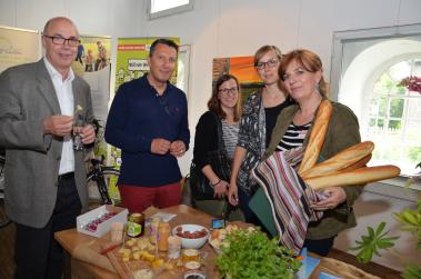 Bildzeile 1: Klimaschutz schmeckt, bewies Jutta Eickelpasch von der Verbraucherzentrale Kamen (r.) auf dem Aktionstag. Foto: B. Kalle – Kreis Unna